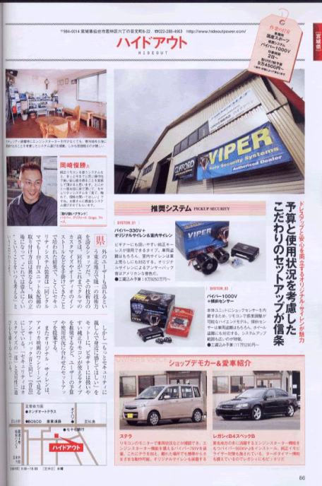 | 盗難・車上狙い撃退マニュアル2008へ 東北のセキュリティショップとして掲載されました |